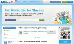 ok zaman sekarang semua ada blog.facebook dan twitterkan..kalau awak semua nak cari duit sambil online je di sini saya nak ajar awak semua.awak join la says.my .says.my ini menyediakan iklan-iklan untuk awak semua promote atau dalam bahasa melayu promosi.